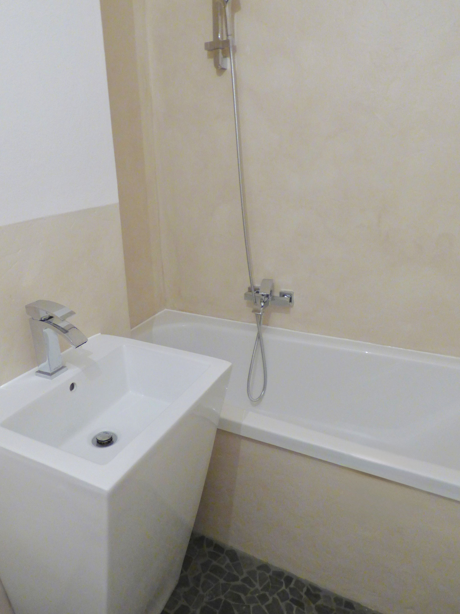 Ergänzt wird das Geschoss von dem geschmackvoll sanierte Badezimmer mit Wanne, Handtuchheizkörper und Waschmaschinenanschlussmöglichkeit.