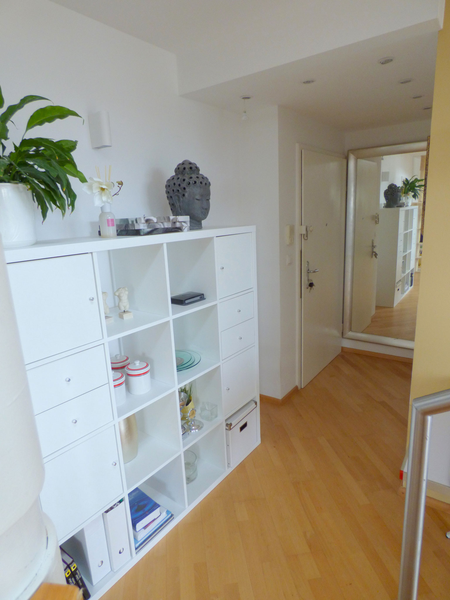 Der modern geschnittene Wohnraum ist lichtdurchflutet und bietet Platz für Sofaecke und Essplatz vor der offenen Küche. Der vorgelagerte Balkon Richtung Osten erweitert den Wohnraum bei schönem Wetter und lädt dazu ein, den ersten Kaffee in der Morgensonne zu genießen. Seitlich ermöglicht ein Einbauschrank das Abstellen von Gartenmöbeln oder Getränkekisten auf dem Balkon.