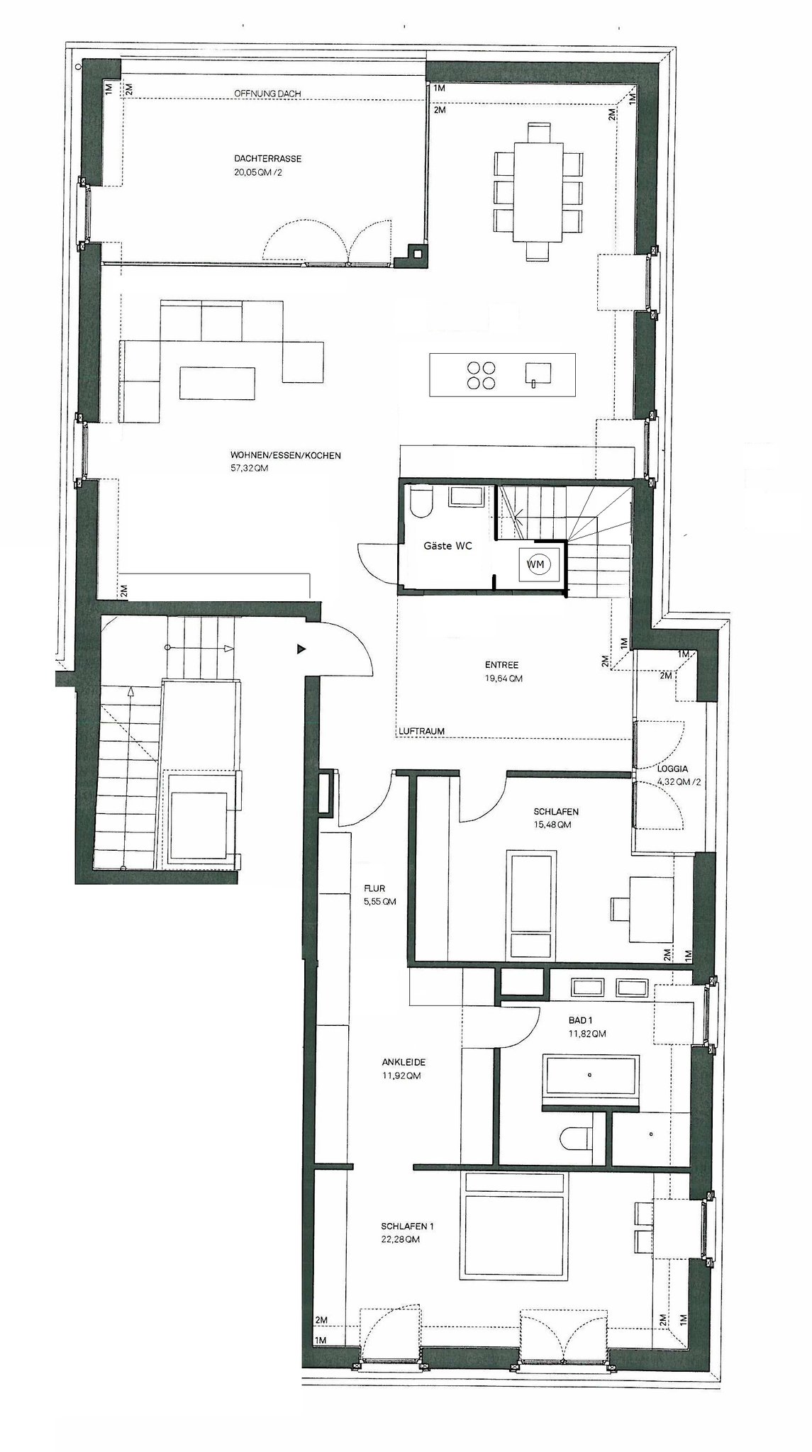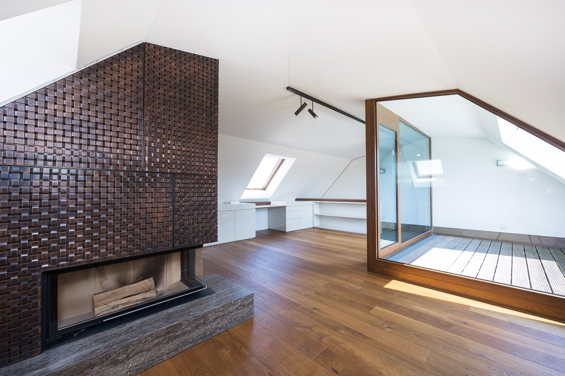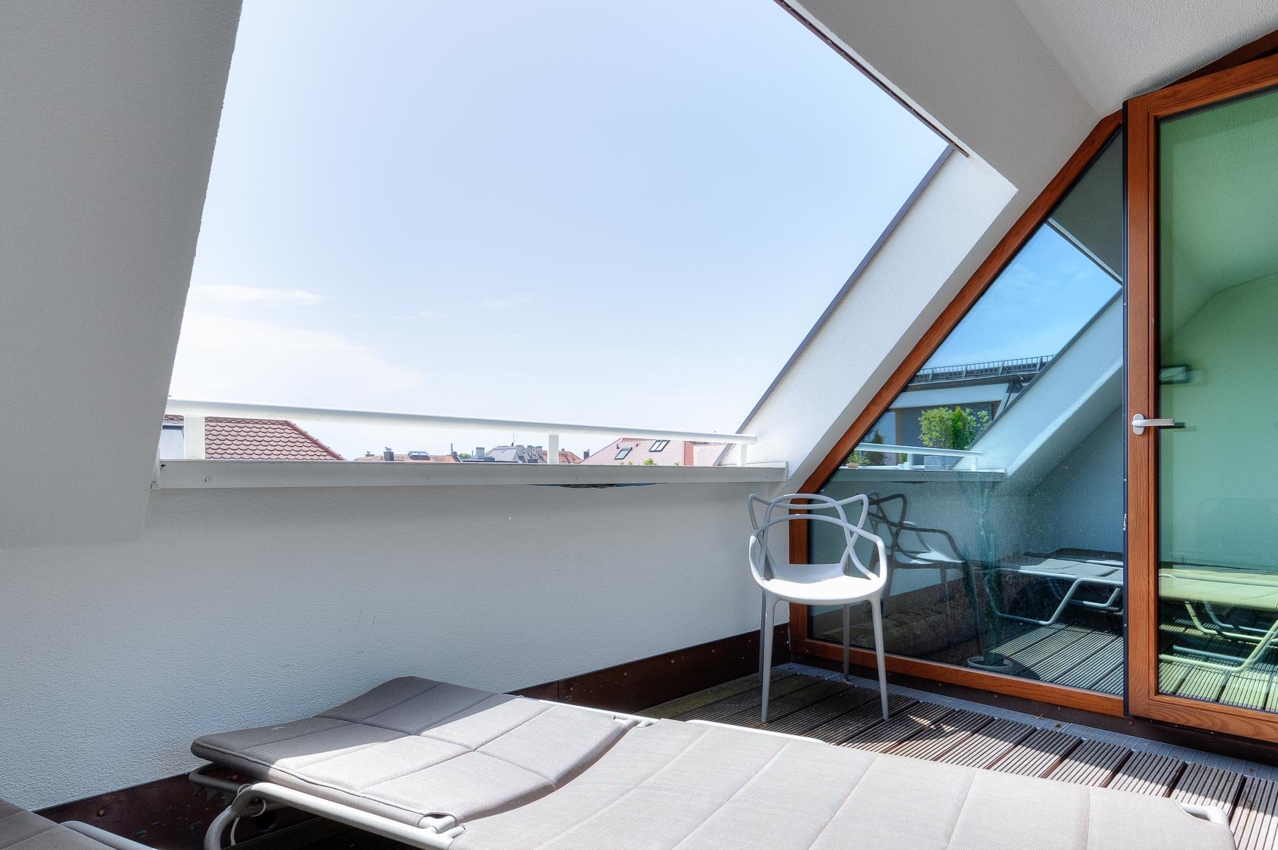 durch großflächige Verglasung zur Dachterrasse öffnet und damit einen Panoramablick über
