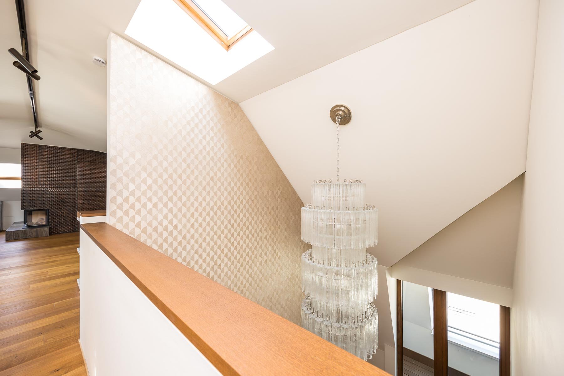 Oberhalb des praktischen Gäste-WC führt die Treppe ins Dachgeschoss. Dieses bietet einen zweiten,
