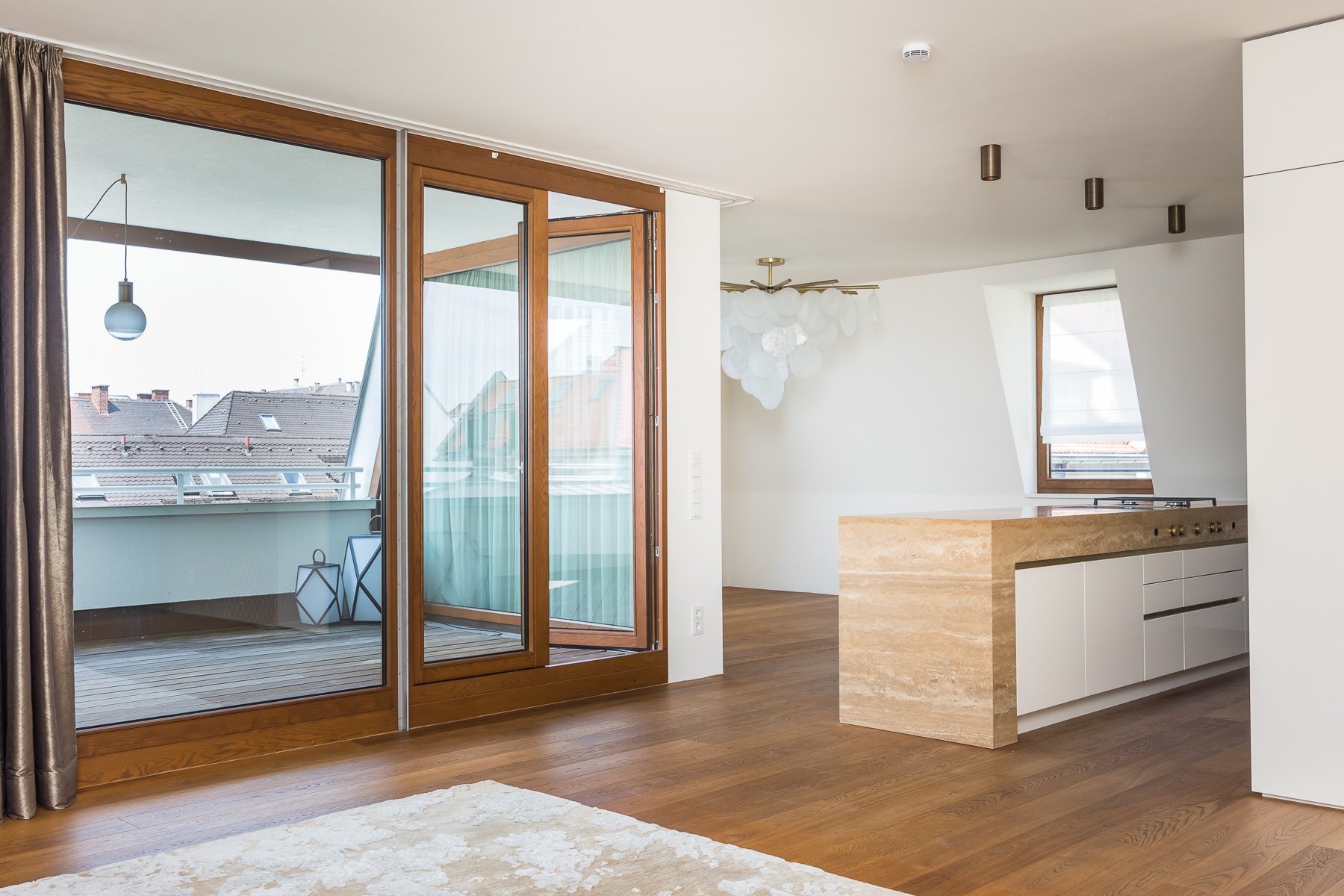 Münchens Dächer bietet. Die hochwertige Gaggenau-Einbauküche verfügt über je 2 Platten